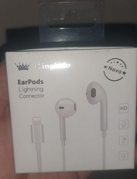 Fone earpods modelo lightning para iPhone, qualidade garantida kinginfo, modelo com botão de volume e microfone